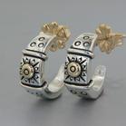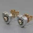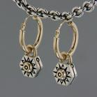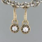 Pearl burst earrings.Sterling silver with 14kt yellow gold,5mm Japanese cultured pearls,round dangles size 10mm. Style# E51sp