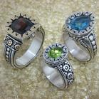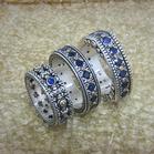 Left to right:four 2.75mm blue Sapphires,Sixteen 3.25mm blue Sapphires & gold spheres,eighteen 3.25mm blue Sapphires & twenty four 14K yellow gold spheres. Style# L to R:RWC-100F,RMC-39F,RMC-97F.